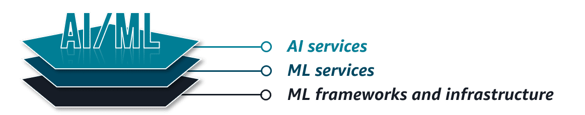 The AWS AI/ML stack is composed of the following three tiers: AI services ML services ML frameworks and infrastructure