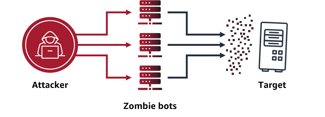 In a distributed denial of service (DDoS) attack, an attacker uses multiple infected computers - called zombie bots - to send excessive traffic to a web application to prevent a web application or system to respond to a legitimate request.